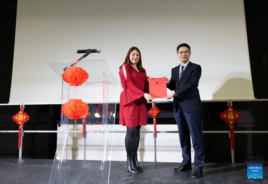The Chinese Consulate General in Marseille presents Chinese President Xi Jinping's reply letter to the Provence-Alpes-Cote d'Azur International School at a delivery ceremony in Manosque, France, March 12, 2026. Chinese President Xi Jinping recently replied to a letter from teachers and students of the Chinese language class at the Provence-Alpes-Cote d'Azur International School in France, extending his best wishes to them as well as all the teachers and students of the school. (Xinhua/Wu Huiwo)